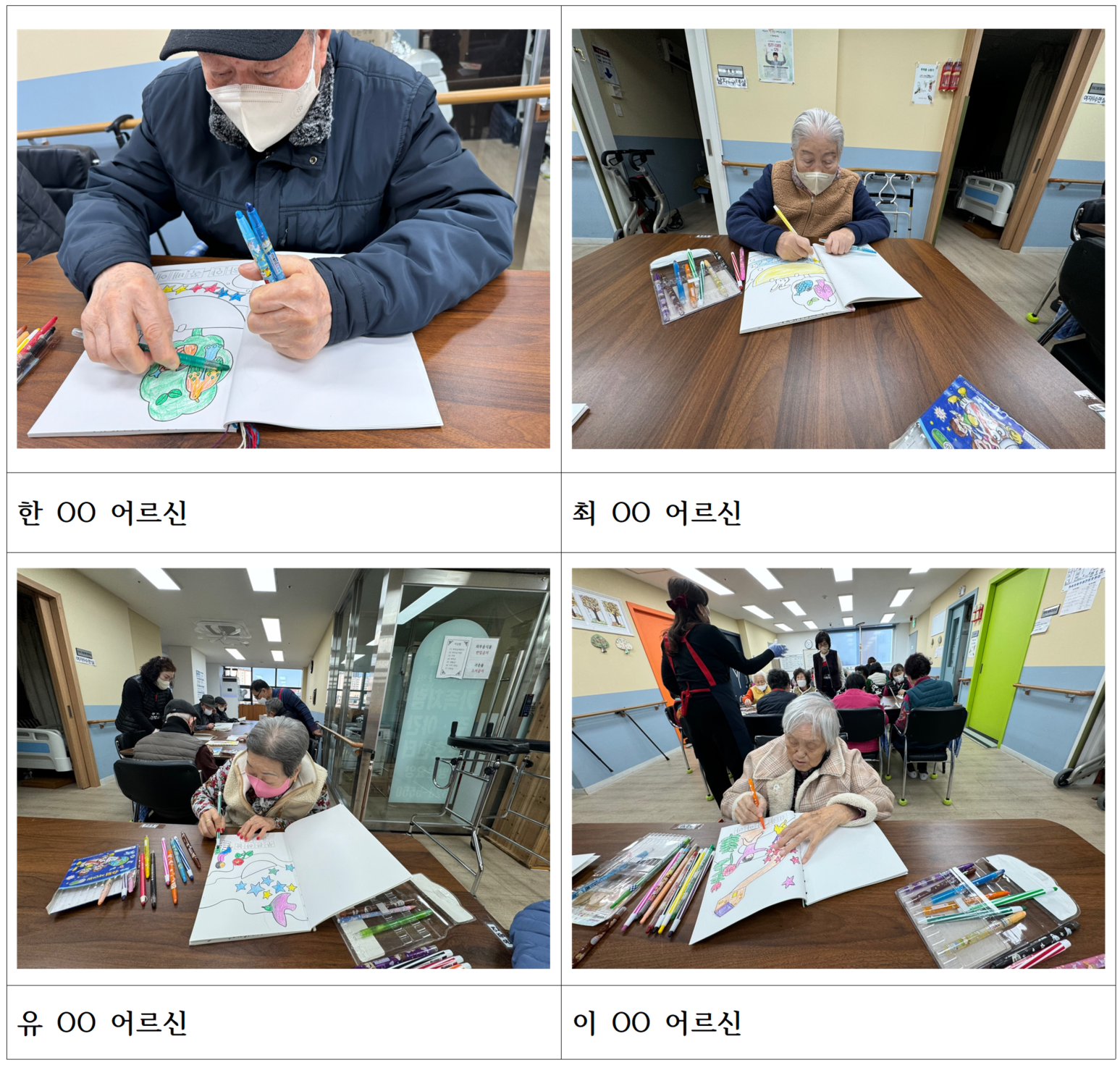 정00 어르신 : "고맙다고 꼭 전해줘요!" 하시며 여러 장의 그림을 그리고 싶은 마음인데 너무 아까워서 한 장 한 장 소중하게 아끼면서 색칠하고 싶다고 하시며 무척 귀하게 여기는 마음을 보이셨습니다