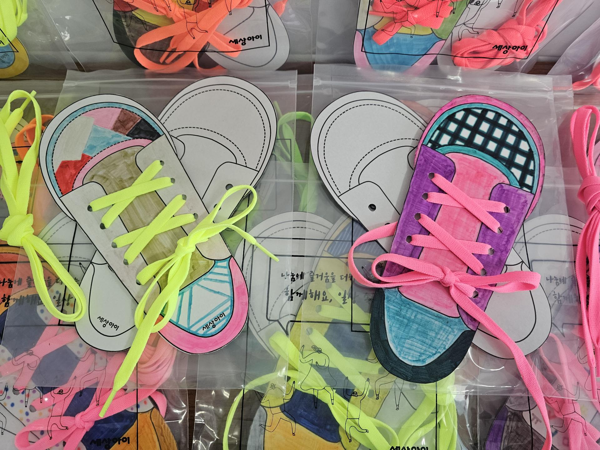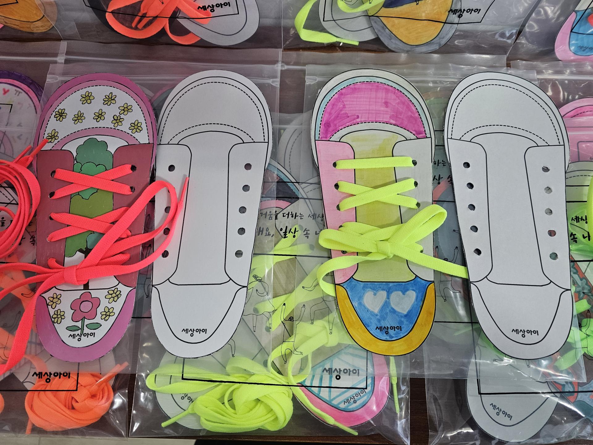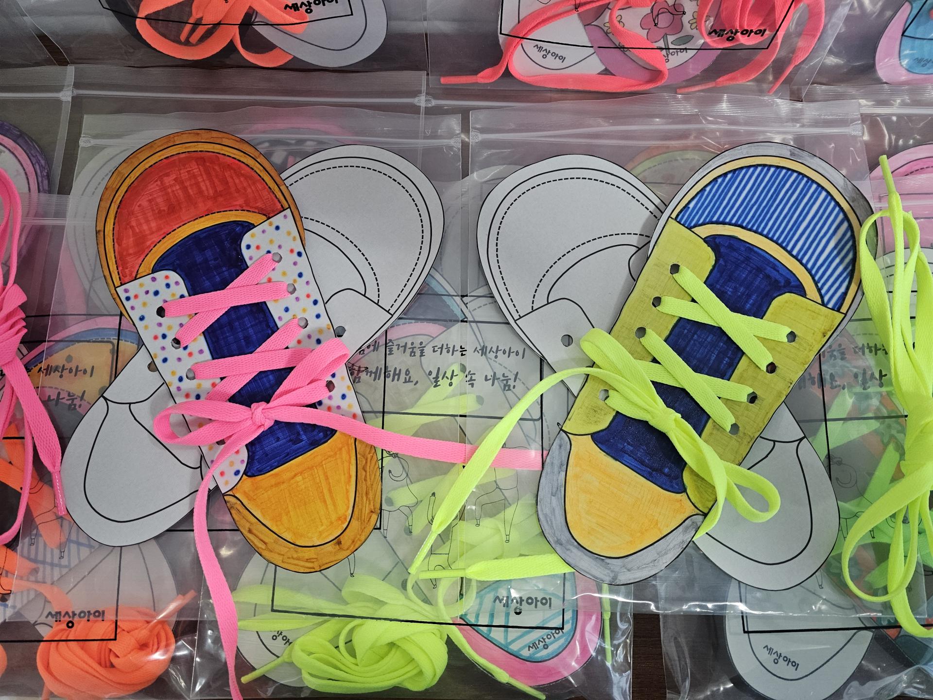 색칠공부책, 운동화교구, 모스액자 선물 - 반웅아동발달센터(성인발달장애인주간활동센터)