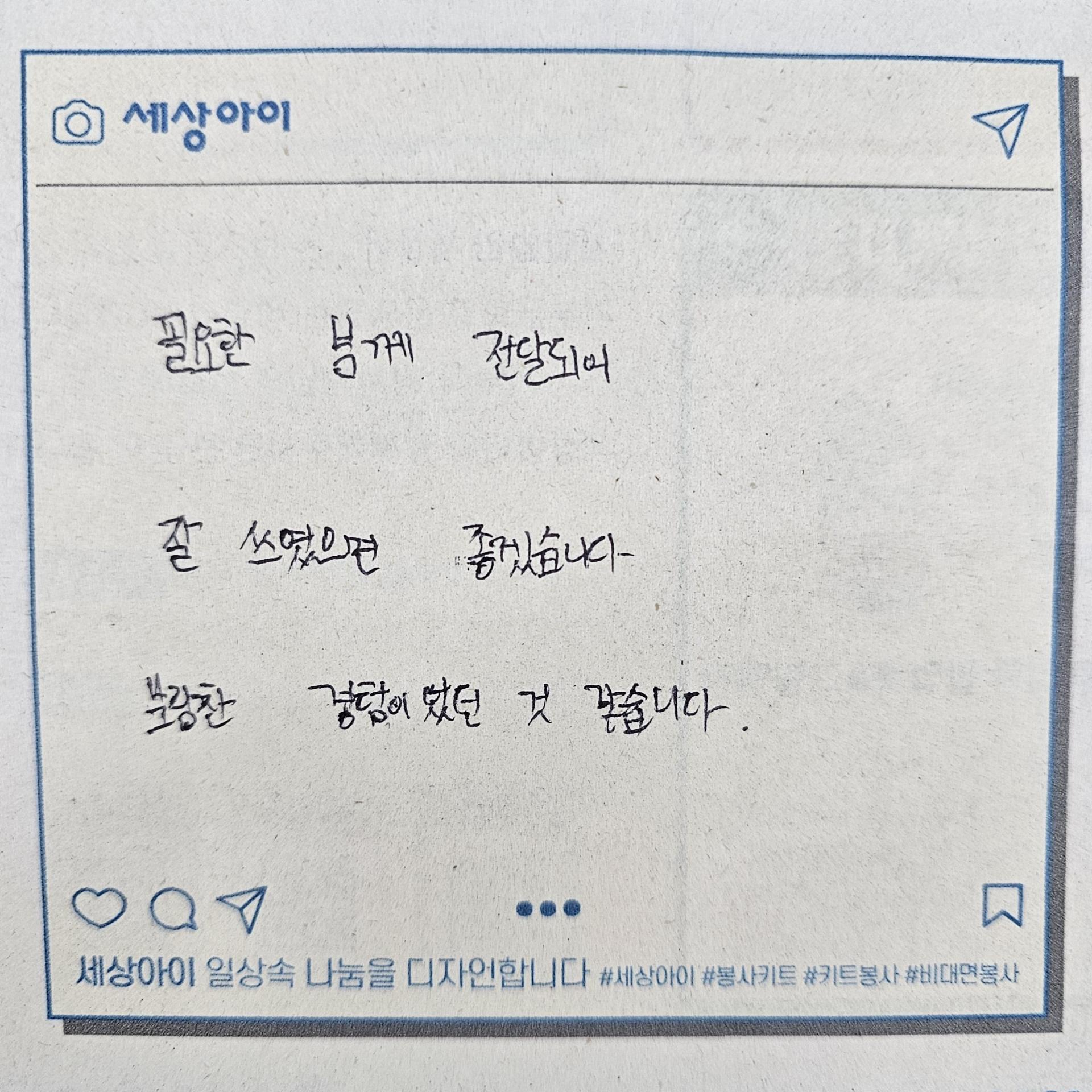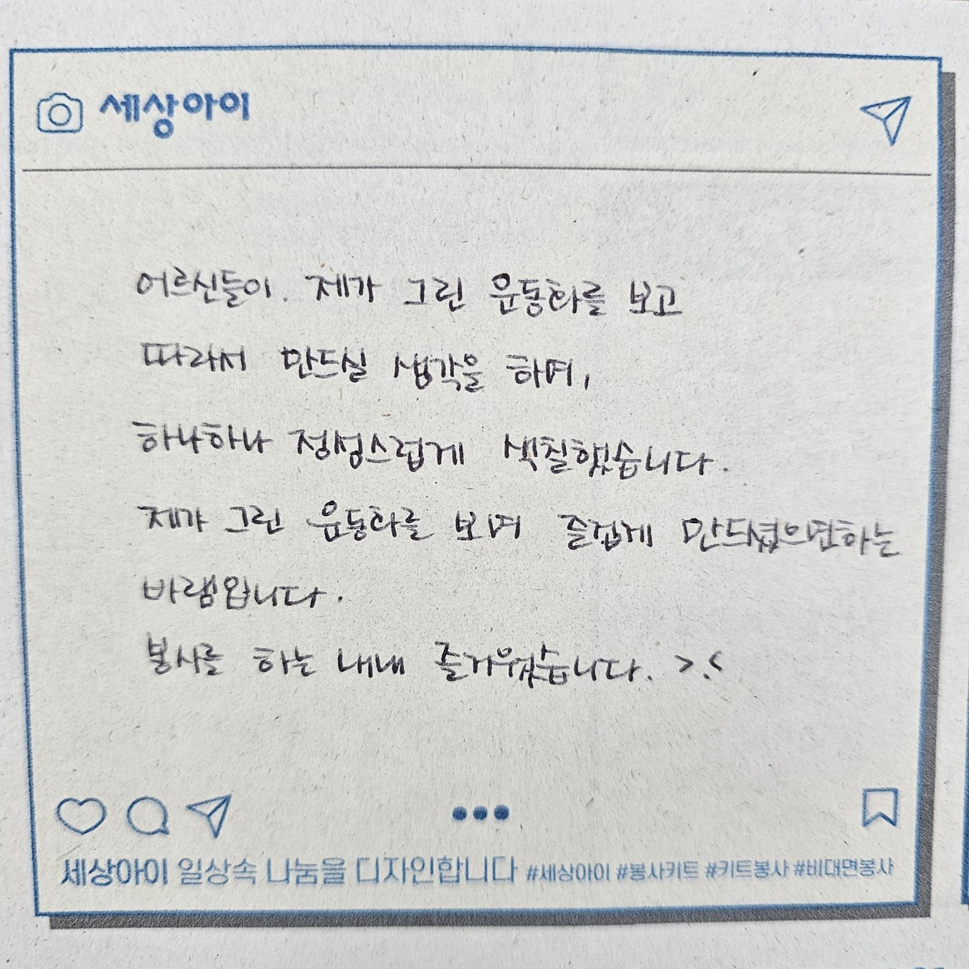 색칠공부책, 운동화교구, 무드등 선물 - 양구 사랑의집 재가방문요양센터