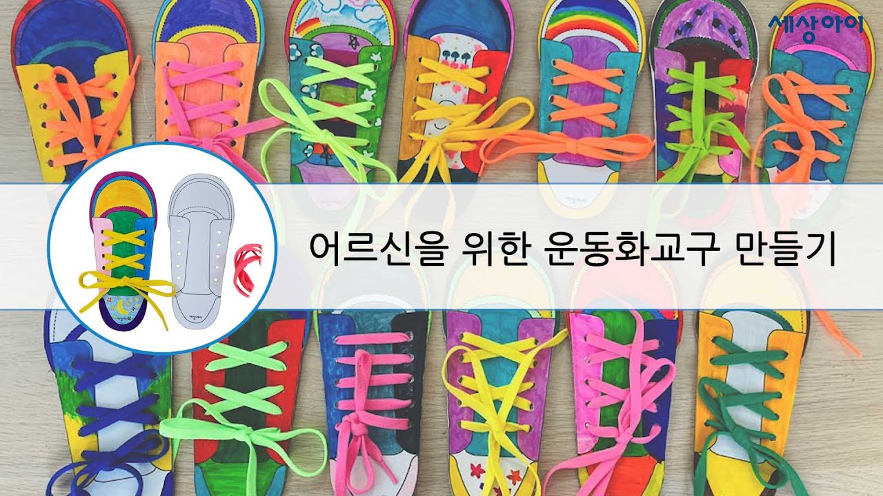 운동화 교구는 어르신 맞춤형 손놀이 교구로 운동화끈을 묶고 푸는 움직임이 뇌를 자극해 치매예방 및 지연에 도움이 됩니다. 완성한 운동화 교구는 요양시설 및 독거어르신들께 전달됩니다.