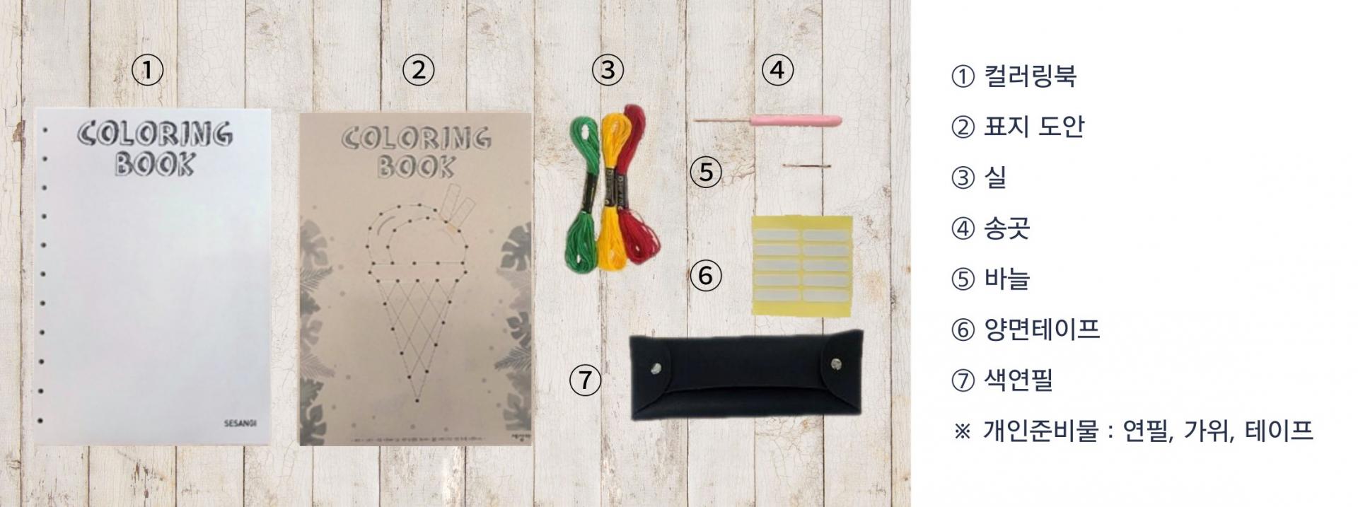 컬러링북은 일상에서 힐링을 얻을 수 있는 공예활동인 십자수와 표지꾸미기 미술활동을 접목하여 봉사자들이 쉽고 즐겁게 기부물품을 만들 수 있도록 기획하였습니다.
