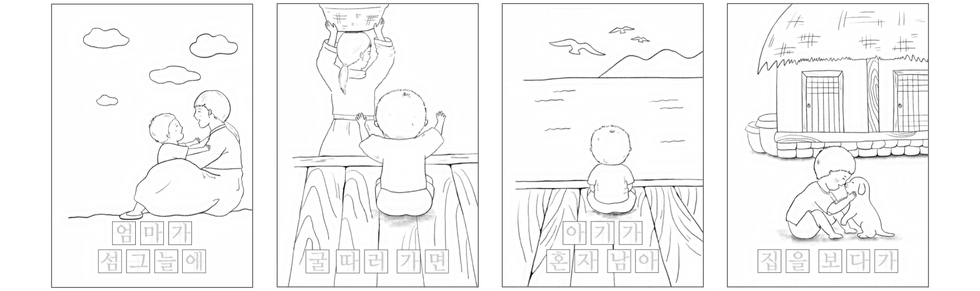 색칠공부책은 어르신이 어린시절을 회상하며 정서적 안정감을 얻을 수 있도록 어르신에게 친숙한 동요를 내용으로 만들었습니다.